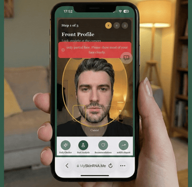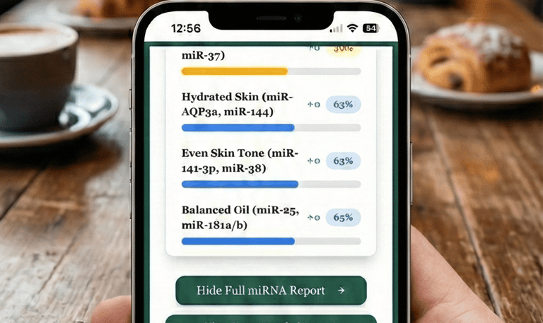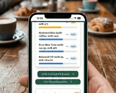 Receive a detailed skin report with scores on hydration, elasticity, and more, plus product suggestions tailored to your unique microrna profile.